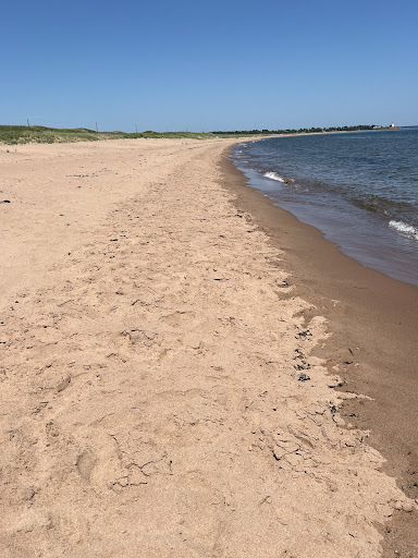 Read moreThis is a picture perfect crescent white fine sand beach. It features a lighthouse at one end and a treed hill on the other. A bank of grassy dunes separate the beach from the road ... so it feels private . The ocean is normally calm here , so it is a lovely place for families with small children . There is also a set of sand bars that allow beachgoers to walk far into the ocean and hardly be up to their waist in the water ! I have been to this beach many times and will go back again ! Another lovely feature of this beach is a restaurant/snack bar with seating on a deck ...a view of the water (across the road from the beach ) and change rooms...