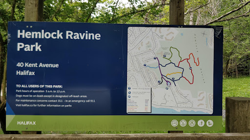 Read moreIt was over a year since I walked Hemlock Ravine Park. It was a beautiful sunny day in March and the trail is fairly sheltered from the wind. The parking lot holds about a dozen cars and I managed to snag the last space. The signage for the trails is new and shows the various routes to walk, as well as the distance of each. There is a designated ( specific hours) off leash dog trail, too. Unfortunately, dogs can't read, and their owners, don't seem to be able to either. Luckily, the dogs we encountered off leash were not interested in strangers. Afternoons are ON leash time, people! The heart shaped pond by the parking lot is a beautiful spot to relax, on one of several benches, either, before or after a relaxing walk through the woods. There are colour coded signs for the paths. Note- the trails are a combination of nature's ground covers as well as gravel to fit the gaps. Have a great walk! There are no toilet facilities...