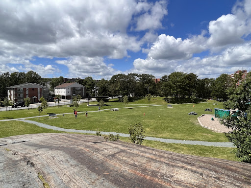 Beautiful little park, GREAT for kids and anyone wanting to frolic safely outdoors on well-maintained grass. Has a NICE playground for the younger set, which is quite well used. Good blend of trees and grass, with picnic spots... and it has the BEST example of "Glacial pavement" in all of Halifax!!! Beautiful large rock, polished by the most recent ice age long ago, showing interesting metamorphic geological features. Lots of fun for the children in both summer and winter: the smaller folk use it as a sliding area. Halifax has SUCH an abundance and variety of "green spaces": one of the major reasons i love this...