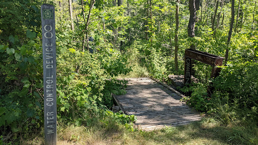 Trails: They are very poorly laid out. Follow my pictures carefully, and they will show you the path to find the falls. It will save you a lot of hassle. A couple of pictures are out of order, but I state that in a comment on my picture. To find the falls, start at the McCoy Pavilion. Stand and look out, and you will see a break in the trees (see my pic because there a number of breaks in the trees). Follow the yellow marked disk golf path, which is easier to follow. Find the multi-purpose trail sign (my pic that shows a horse). Then, cross the dam and immediately turn left. Find the "water control device" marker. Lastly, turn left at the two yellow signs that say "Warning: Dam upstream."