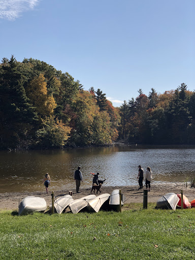 Activities: Boat rentals are closed this year, but people brought their own kayaks and canoes. There is a boat launch area and a dock. You can go swimming on a sandy beach. There is a disk golf section. You can BBQ here or use a fire pit. You can follow the poorly laid trails on a very poorly drawn map. Christie's Falls is beautiful. Don't miss it. Be careful not to step on baby frogs at the falls; there are so many tiny brown ones. We were able to climb on the rocky surface of the falls, and then climb down it and stand right in front of it. Beautiful!