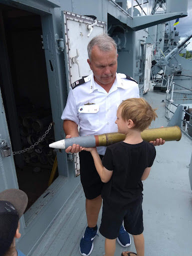 Read moreI took my boys today, on a cooler day in August. I felt like it would have been roasting most other days this summer so far. My 4 year old, who is way more into vehicles and war, was almost too scared to set foot on the ship! I was really surprised. The ladders to get up and down were too steep and he was really apprehensive. I got him up a few and he certainly warmed up the longer we were there. He was also a bit freaked out by the height of the ship above the water.