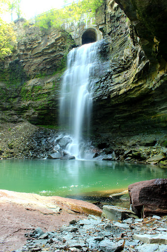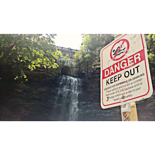 This one is NOT for beginner hikers/waterfall chasers. There are a couple ways to get here. 1) Follow the trail that starts at Dundurn St. downtown and hike about an hour or so. I met a couple that took this route, I've never done it myself. 2) Park your car somewhere close to the top of the falls (Senic Dr area) and then follow the fence from the bridge all the way to the end, taking note of all the danger signs. You'll find a hole stretched open at the bottom where hikers climb under. Again, I do NOT recommend this path for beginners or anyone who is not a strong climber. From there you'll basically scale down the side wall of the gorge. Hikers have kind of left a recognizably beaten path but for the most part you'll use any rock climbing skills you have and stay close to all trees in case you lose your footing. ALSO a good idea to bring a first aid kit and gloves as I cut my hand on a small piece of glass going back up and had to doctor myself on the cliff. Just be smart and be safe. Once you're at the bottom it's smooth saling. Back track along the path until you reach the falls! You'll come across the first waterfall on the left which has no signs around it at all, but note that there is a danger sign on the end falls that claims the water may contain sewage and e.coli bacteria. Keep that in mind and enter at your own risk. I went in and experienced no physical after effects besides a sun burn. Shower very well once you're home and listen to your body, if you start feeling sick, visit a doctor.. You don't want to get e.coli poisoning! Either way you choose, pack lightly and bring lots of water! It is absolutely breath taking. Out of all the falls I've seen this is by far my favourite and it is worth every second of the hike, no matter which route you take! If you choose to scale the gorge, note that it is much easier going back up but you'll need to remember where you came down in order to get back to the fence properly. BE SAFE, I can't stress this enough....