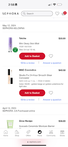 Read moreToday I drove an hour and a half specifically to go to Sephora with my sister to find products weâd needed. We had spent 2 hours in there looking for shades of certain products. Once we had finished finding almost 400 dollars worth of items, weâd gone to the till to ask to put our bag on hold for 30 minutes because our mom was going to come pick up the stuff we picked out as our Christmas presents. The lady that had taken our basket asked me how long my mother was going to be, and I told her less than an hour. She told me that she could only keep it for up to 2 days, and I told her that we would be back to purchase in 30 minutes so that would be fine. 30 minutes later, me and my mom went back into Sephora, went to the till, and asked for our basket. A different lady at the till looked and looked, and could not find our stuff. I was not super worried though, I had left a number of baskets on hold in the past and there had never been a problem before. Over 5 minutes of the lady looking for the basket went by and she could not find our stuff. Right at that moment, the previous lady that had taken my basket before appeared. I asked her where she placed the basket because her co worker could not seem to find it and she responded with âYa, well, I put it away. We were so busy that I put it away.â I then told her that she had promised to keep it at the till and she just said âsorry.â which she obviously did not mean. The store was now closing, and we could not go back to look for all the stuff we had left with them. Not to mention all the shades we had spent so long looking for, that we now could not remember. If they were that busy why would have she taken the time to put all the products back in there places all over the store? I spent all my time, money, and effort driving a total of 3 hours to go to Sephora and drive back home empty and handed and upset. If there was a zero star option I...