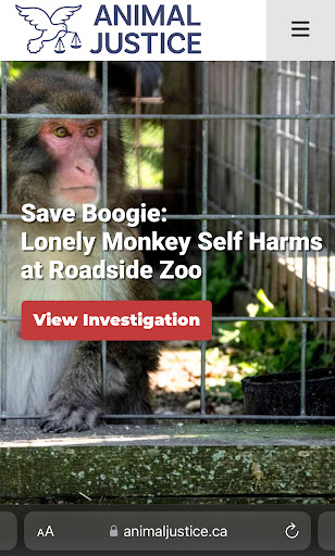 Please ensure that Animal Welfare Services takes swift action to remove Boogie from Bervie Zoo and arrange to send him to an appropriate facility like Story Book Farm Primate Sanctuary in Sunderland, Ontario. This sanctuary is equipped to provide the care and environment that Boogie desperately needs. As you are likely aware, Bervie Zoo has a history of non-compliance with animal welfare laws. AWS already seized dozens of animals from the roadside zoo in 2022—including an olive baboon who now lives at Story Book—and faces 21 outstanding charges related to the poor conditions these animals were kept in.