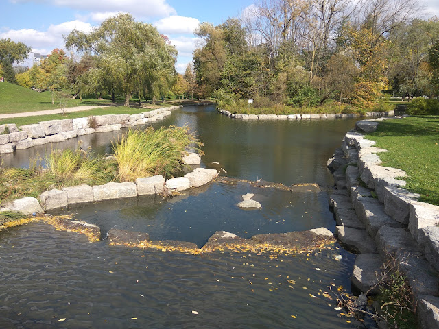 Victoria Park opened in 1896, the park was built mostly on swampy farm land. The man-made lake is fed by Schneider Creek, surrounds three small islands, and is crossed by multiple bridges, one dating to the creation of the park. The park also contains the Victoria Park pavilion, the Victoria Park Gallery and Archives, a bandstand, and a historic boathouse, now a pub and music venue.