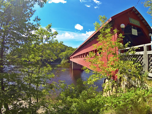 Histoire et reconstruction : L'original pont couvert de Wakefield a été détruit par un incendie criminel en 1984, ce qui a provoqué une vague de soutien de la communauté pour le reconstruire. Grâce à des fonds publics et à des dons privés, une réplique fidèle du pont a été achevée en 1997. Aujourd'hui, il continue de servir à la fois de passage piéton et de site touristique.