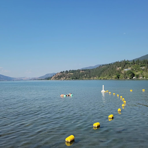 Playground, it's the best playground I've been to around the Kelowna area. Some of the pay structures are built into hills, lots of wood, lots of fun things to climb, swings, slides, a water table and many more. Beach volleyball nets are not on the beach but the courts are good. Beach, it's big with pretty nice sand. It takes a long time for the water to get deep so good for kids but you have to go way out to get a decent swim. Water, not super clean but decent enough. Lots of geese and some scummy stuff. Good facilities. Clean large washrooms. A covered picnic area. Several soccer fields and baseball diamonds that all look really nicely kept up.