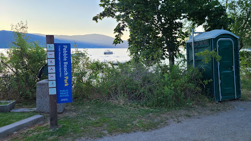 Beautiful little beach on okanagan lake with a large dock. Pebbles are more like large rocks,not sharp rocks just big and clumpy rocks. I guess you could launch a canoe or kayak here and swimming is doable but may want some type of water shoes so you don't kill your feet. I imagine a sunset here would be pretty sweet depending on conditions. There is a trail as well that goes up and down the shoreline pretty sure it's a few km each way,I have yet to explore the trail entirely. No bathrooms here and I did not notice any Porta potty bathrooms so best do that before coming here. Winter and fall much more quiet but summer it's a zoo down along here parking...