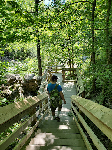 The place is beautiful and easy to get to. The falls are a five minute walk from the parking lot. There are outhouses for the adventurous but have regular washrooms next to the mini museum which is close by the tails up the hill. We never saw staff so entry is by honour system and we had to go to the museum to see a map. Bring cash. The falls are gorgeous but be warned you need to go down 4 flights of stairs to get there. For people with mobility issues like wheel chair, canes, knee problems or walkers it might not be the place for you. However the stairs are wide and have flat areas to rest on so you can go at your own pace. But dont let the stairs scare yah, they are steep but not bad at all. From other reviews I thought it was gonna be 10 flights of stairs, but it's only 4. If your not in the best shape you might be outta breath at the top. There is some nice rocks to sit near the falls at the bottom of you dont want to get wet. You don't need a bathing suit to enjoy it as most places are knee deep. I'd recommend wearing sandals or water shoes in the water since the algae makes the surfaces slick and it's quite rocky in other parts. The deepest parts down the stream are at most 3-4ft deep. Water is pretty warm too. Also keep an eye out for stinging nettles there's a bunch around the falls. As with most conservation areas be prepared and understand it can be dangerous if your not careful and to clean up after yourselves so...