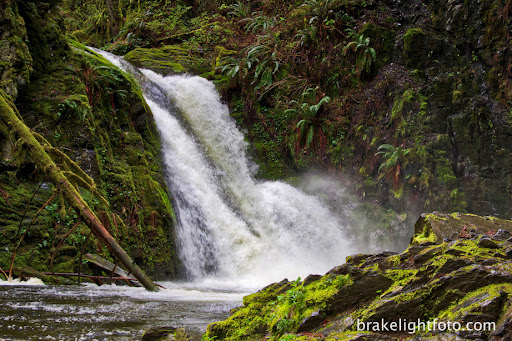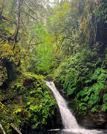 There was a small parking lot on the right just before the goldstream campground check-in building. From here you walk past check-in, there is a pit toilet to the right and then the trail access up on the left. Trail was a bit muddy in spots but plenty of well placed logs and rocks to hop along to keep your feet dry. There is one short steep section before the falls and a large staircase leading down the actual falls. But lots of sitting area and overall didn’t encounter many people it was a very white and relaxing walk. We went out through the arbutus loop that tracks you back through the campground. It’s definitely family friendly but the stairs at the falls might be challenging for those with...