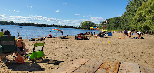 Perhaps it was a good beach in the past (to judge by the nice pictures) but today there is NO beach. Only a park with some shade and picnic tables. The place is entirely flooded up to the grassy area. No sandy shore at all. Pets are allowed but must be on a leash and Laval officers are always around...