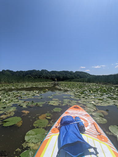 Great place to go kayaking, canoeing, rowing, or paddling. The water isn't the clearest and the ground beneath it is mud, so I wouldn't recommend swimming.