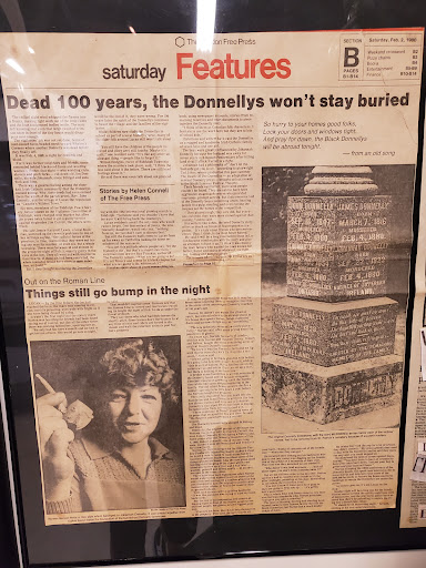 He has a map for three other spots in town you can visit that are all less than five mins away (the donnelly homestead, the school house the vigilante crew gathered at before walking up the roman line to slay the Donnellys and the church where one of the sons was married + where the murdered bodies are lain with the newer tombstone. Just magical. Great experience for history and true...