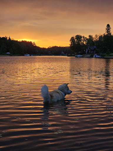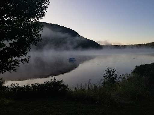 Nous avions loué un chalet sur place, lieu calme, très nature et beaucoup d'animaux. Nombreuses variétés d'oiseaux, de serpents, amphibiens, insectes. (beaucoup trop de mouches et de moustiques fin mai, mais on nous avait prévenu et sauvés grâce aux moustiquaires des baies vitrés) le lac est plutôt stagnant, bordé de montagne et colline ainsi que de rivière. Environnement très joli et isolé. 25min de route pour le 1er magasin. Pas ou très peu de réseau...