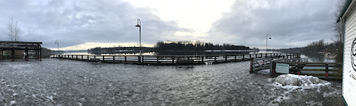I dont know what to say about this wharf.....it's a wharf. It is wheelchair access to the water I think. There is a turn part way down the ramp to the water that might be outside of the turning radius of a wheelchair, but most likely it's good. It is the closest public access to the Fraser river from the Maple Ridge city center. And the parking is free, but there are very few spots, maybe 8-10 parking spots immediately near the wharf. Quite a variety of people hang out at this wharf, all of them are friendly, some might be homeless and some might be businessmen and women, everyone is there watching the sunset or taking in the view as the Mighty Muddy Fraser river moves things on by. You can fish off of the dock or tie a boat to the dock as you pickup friends or even walk up to the pub which is on the other side of the tracks, but you leave your boat there at your own risk. I've never seen a charge here for mooring a boat for a few hours. It's probably a 40-60 ft dock though there is nowhere here to car launch. I've seen salmon caught here at the right time of year. You can gain access to this wharf from the city center by simply walking to the end of 224th street and through a foot traffic tunnel under...