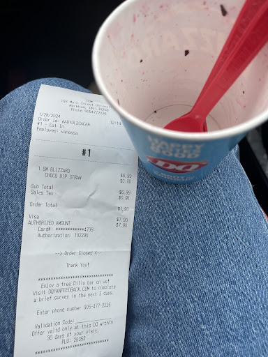 Ā Ā Ā Read moreIāve been living in this neighborhood for quite some years. Main Street is a must go when I have friends visiting. All shops here and the entire vibe are friendly and comfortable until today I walked in DQ (teenage wants ice cream). I should have checked the Google review before I decide to patronize them. The price goes higher than the Starbucks crossing the street while the service is disguising which spoiled my mood on Sunday morning with my just-landing friends. The cashier (Vanessa? As shown on receipt) is cold face (no welcome no smile no greeting) when we walked in. Pushed us to order when the teenage even just hesitated on choice for a few seconds. I was extremely felt offended when I want to double check the price, because she didnāt give me when I paid! She impatiently threw the receipt on the table when I said a few times āexcuse meā and asked for price. Itās not about one or two dollar more. It matters the expression of this neighborhood leaving to my friends. It matters about customer rights. In conclusion, very disappointed and leaving me the very bad mood. I wonāt...