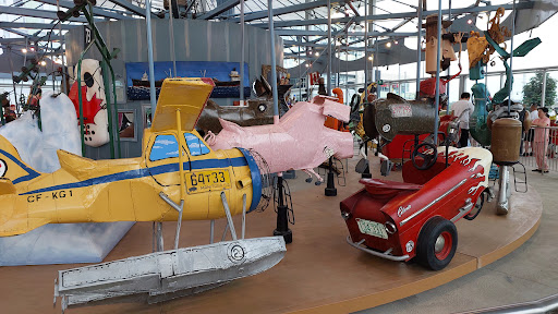 The carousel itself is a mish-mash of Canadian history and culture. It's a very interesting piece if you ask me. Each seat basically can tell a story on it's own. There are seats for younger and older kids so they call can have a good time on it. There is a height requirement where parents will have to ride with their kids if they don't meet it.