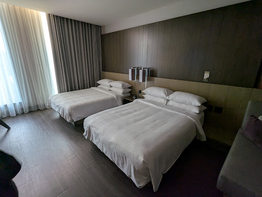 Service of the hotel was okay. They were as accommodating as they could be. There are some service standards I disagree with but that could just be me. Such as you should not offer a late checkout for a guest that is staying the night prior if the next guest is requesting an earlier check in. (I did not ask them to kickout the guest staying the night before, just consider the request of the next hotel guest... I even put a request for early check in a week prior.) Although I ended up leaving some of my luggage for the hotel to hold while I go about my itinerary for the day. It would be nice to have a place to wash up.