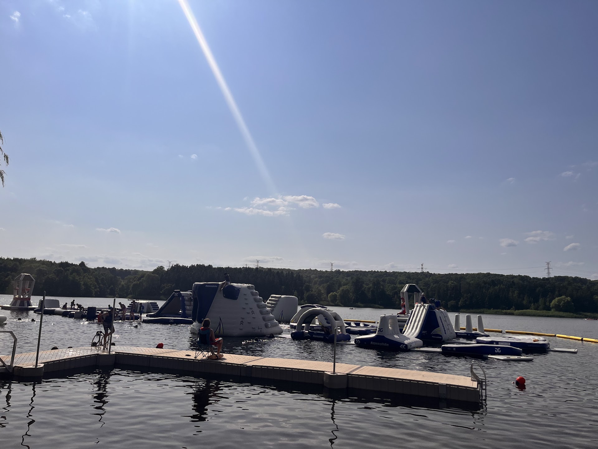 The Kelso Cove water park is an awesome way to spend a hot summer day. A must visit.. but not for everyone, including me. š First thing you have to reserve the spot online which is a little lengthy process given the details and waivers. Here, please note that participants under 9 need to have an adult over 16 with them, inside the water park. Typical swim suit isnāt mandatory but loose clothing isnāt permitted. Once you enter the Kelso Conservation area and get to the parking area, you will see the white and blue floating structure next to the Cove admission. You can check in there, get a wrist band. a life jacket. Take off your extra clothes and slippers and get to the board area. Pretty straight forward till..The lifeguard there tests you for a short swim, which is more like a floating with confidence test. Which I failed miserably. So they didnāt let me get to the structure. Although the swim to the structure is nothing! Just a few strides but I just couldnāt do it. Maybe because the water is like 16-20 ft deep and I freaked out. But there were so many people- of all ages, having so much fun. It is basically an obstacle course on water, so one needs to be fit to keep up with the challenges and all the action around. The slots are 2 hours but they ask you to leave 15 min before time for the next slot. Maybe itās different for the last slot of the day. After the adventure on the water park, one can have a picnic, go to the beach or head back home but all in all it is a must do to beat the summer heat. The staff is great, helpful , on the move and nice. The park is amazing. Lots of parking, lots of fun. There is enough space for beach chairs and lots of seating in front. I plan to come back, after I finish my swimming for dummies classes. š Highly recommend this activity this...