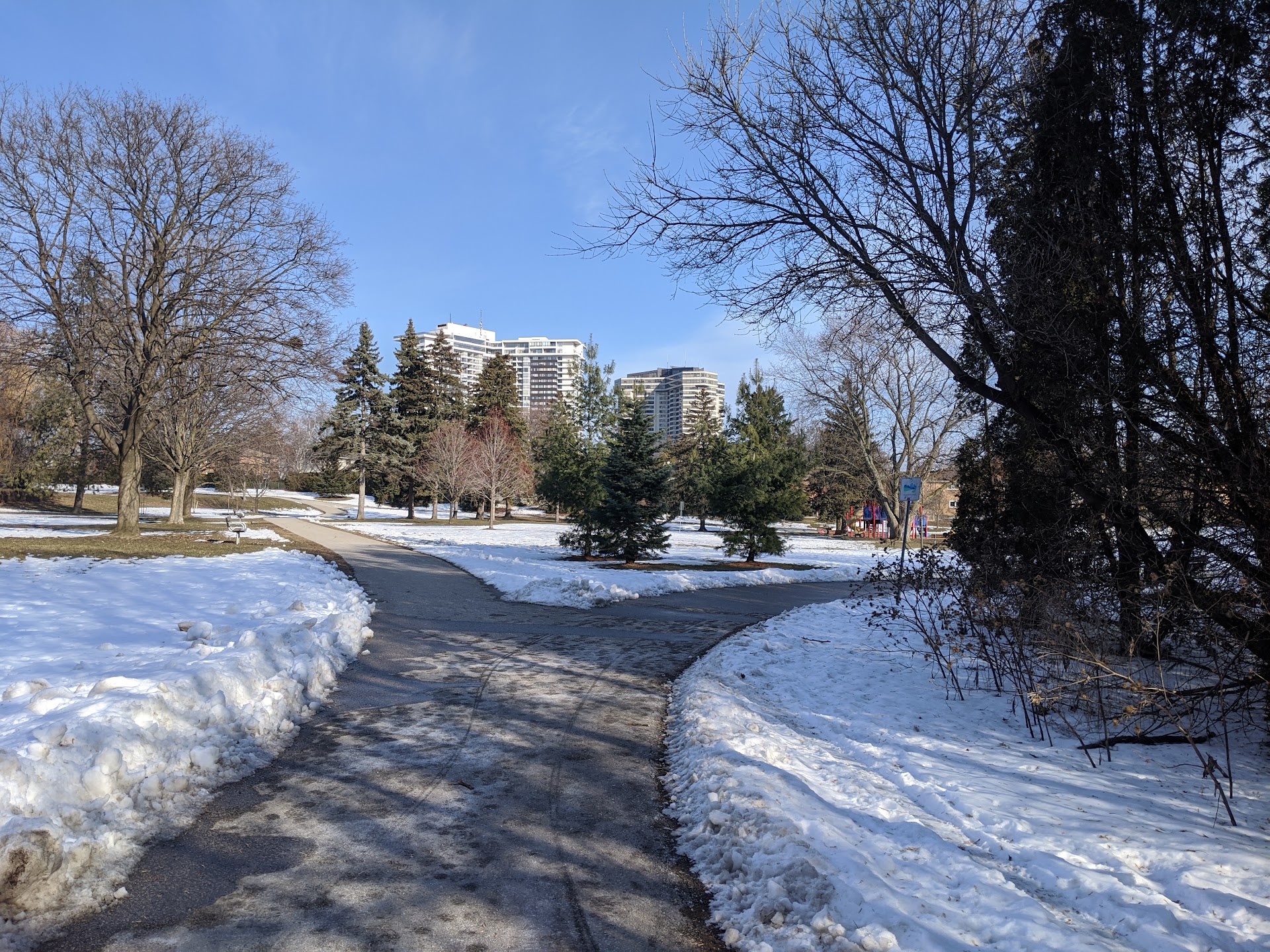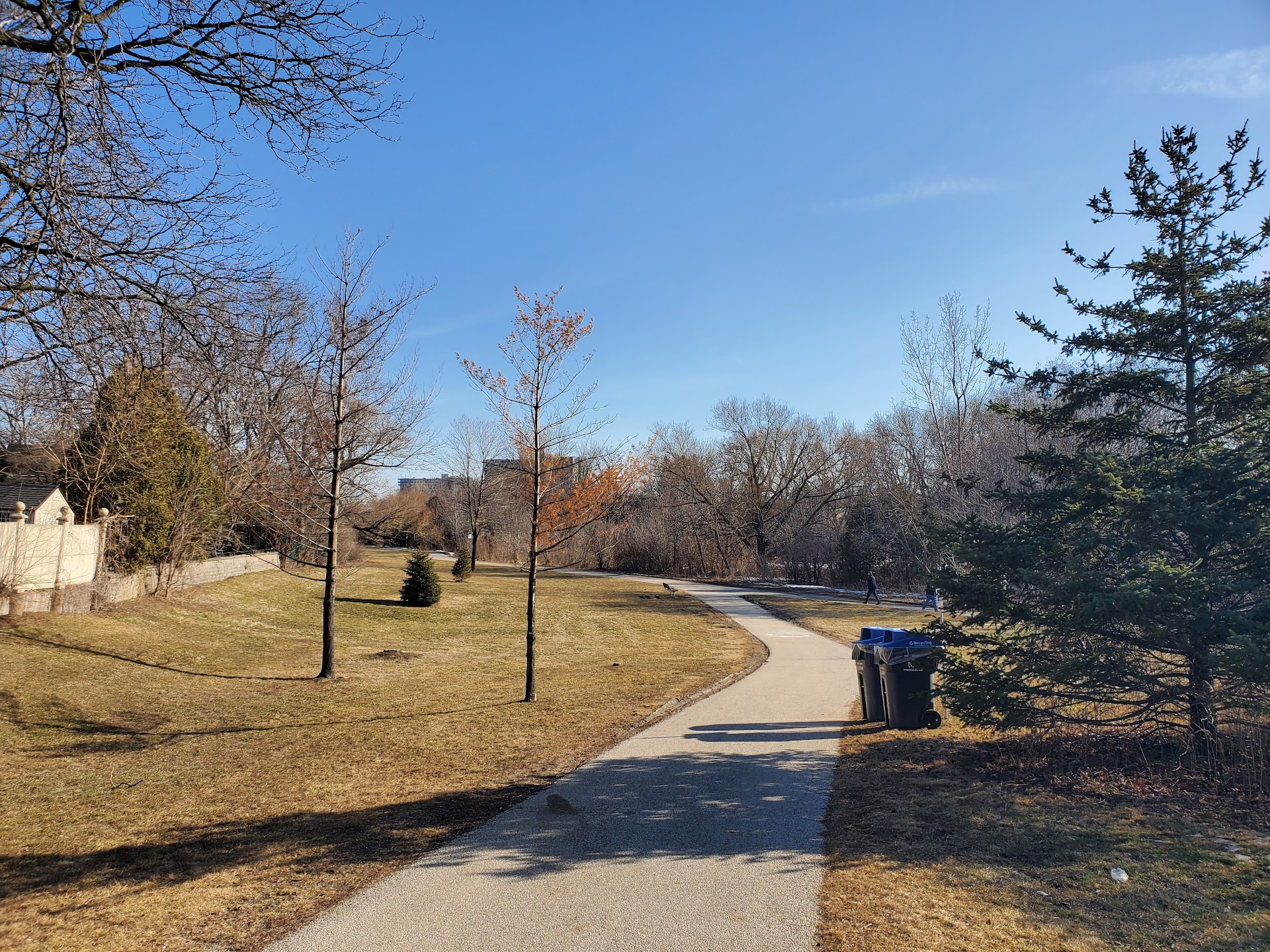 A wonderful neighborhood park that leads to and connects with the Applewood Green belt on one side and to the playground on the other. It's a big stretch of green catering to a good range of residential communities around it. A good place to skateboard, ride bicycles and scooty. Lots of people walk their dogs here as well. For parking you might have to park on main roads and walk into the green trail. Essentially its a walking trail. Credit river runs through it, so duck's and geese can be found as well and some of Ontario's common birds as well. All sorts of trees, old and new but such a beautiful sight to see, especially in the spring and summer season as they are at their best! Study trunks and nature with the kids if you like. Highly recommended...