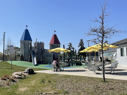 Had my child's school picnic day there! Very clean and shaded area in the playground (protecting from sun). This llayground was further into the park. There is another castle looking like playground at the entrance (near parking lot) Lots of trees and nature. There's basketball court, tennis/badminton courts and bike/skateboard ramps! Courts and playgrounds arent close enough though to supervise different activities at once. But, overall very nice!