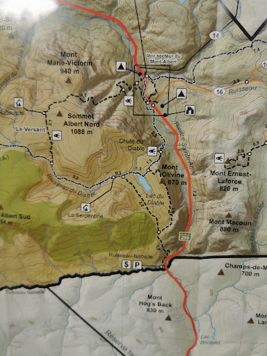 This was probably one of the most beautiful hikes I've done in eastern Canada. The hike goes up the Olivine Mountain at a fairly high elevation that offers breathtaking views of the area and the surrounding mounts. The mount Olivine itself culminates at 670 meters, which is actually the lowest of all the mounts in the area. The views are still beautiful and you will not regret the sometimes rugged trail to get up there, which can be very rocky at times. Also dress adequately for the hike as the temperature drops as you climb up the mountain. We did the loop around the Lac Du Diable (Devil's Lake) which took us about 5 hours with a break at the Serpentine shelter. So you don't want to start the hike too late of course as the temperatures drop even further when the night falls.