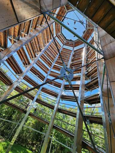 Nice walking paths through the forest, above the trees. The path is accessible through stairs or elevator, and then the walk to the top of the tower is entirely accessible. Easy for all ages. Beautiful view from the top, and a terrifying and satisfying sensation to stand in the middle of the net 40m...
