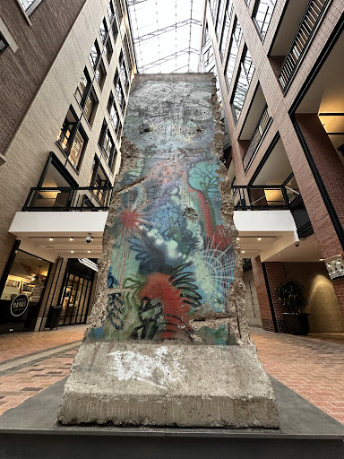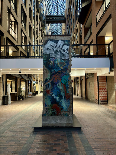 This authentic 3.6-meter-tall, 2.75-tonne concrete slab originates from near Berlin's Brandenburg Gate. It was gifted to Montreal by the city of Berlin in 1992 to commemorate Montreal’s 350th anniversary. The wall fragment stands as a powerful symbol of freedom and unity, marking the fall of the Berlin Wall on November 9, 1989 .