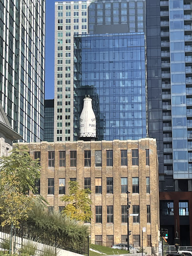 The Guaranteed Pure Milk bottle is a landmark water tower in Montreal, Quebec, Canada, located at 1025 Lucien L'Allier Street. The 6-tonne, 10-metre-high Art Deco structure was designed in 1930 by architects Hutchison, Wood & Miller as advertising for the Guaranteed Pure Milk Company.
