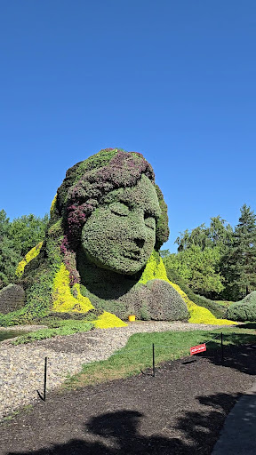 Today, the gardens span about 25 hectares, filled with thousands of flowers, trees, and shrubs, and they feature permanent mosaiculture sculptures—giant plant artworks made of hundreds of thousands of flowers—dotted throughout the grounds .