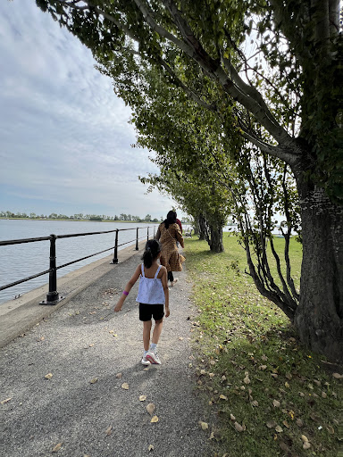 This spot at the intersection/end of the Lachine canal park bikepath, and the riverside bikepath is the beginning of Lachine. the last/first lock of the original canal system, so it's historic. Once one crosses the lock bridge, to the left above the lock is a marina, while to the right is a restaurant with outdoor seating. This spot is also a bicycle bypass. Further along, back on the city side are two immense car lots, and a gate with tourist info and a bike rental shop. Visitors are welcomed to 800m jetty in to the St-Laurent, on one side, the marina on the other. The area has public art, an arboretum, Canada geese and views. Good for visitors and fisherfolk. The bikepath continues right to the end, and...