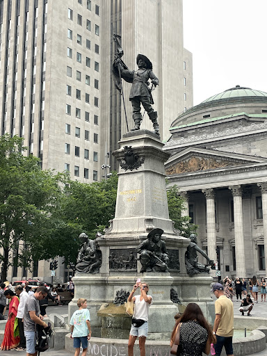 À Ne Pas Manquer : • Importance Historique : La statue raconte la fondation de Montréal à travers des sculptures détaillées de figures et événements clés. • Emplacement Idéal : À deux pas de la Basilique Notre-Dame, c’est un excellent point de départ pour explorer les ruelles pavées du Vieux-Montréal. • Ambiance Saisonnière : Pendant les fêtes, la place s’illumine de décorations magnifiques, ajoutant une touche magique. • Dynamisme : Des musiciens de rue et artistes locaux animent souvent la place, apportant une ambiance vivante.