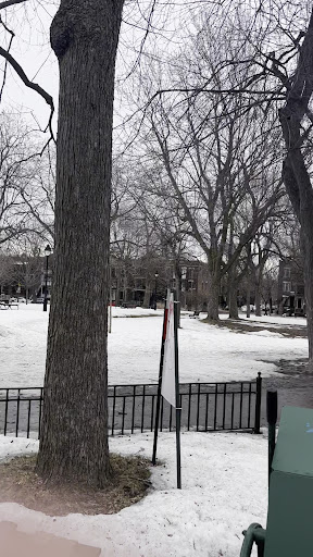 Because the park is so well-loved by locals, it has little of the danger associated with city spaces at night. Occasionally highschoolers will hop over the fence to dive into the pool, but that's as much trouble as you'll see. It seems that because they city treats its citizens with such attentive humanity in these spaces, the people rise to a standard of civility in them. In the warmer months, wooden loungers and stands for hammocks are raised, and in the winter a skating rink is set up for hockey, as well as a meandering skating path through the trees.