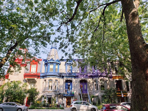 Alamo Square Park SFO- if you know you know. it’s just like that. but this park has only this building and Henri Julien Ave - some more colorful French-Canadian residential buildings. In the little streets around the tree-shaded square, there are still a few attractive Victorian houses. Some now house pleasant restaurants.