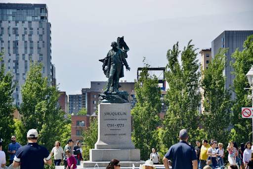 Vauquelin Square is a small urban square located in Old Montreal.