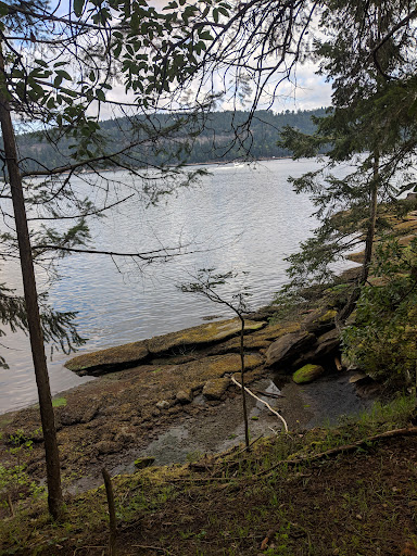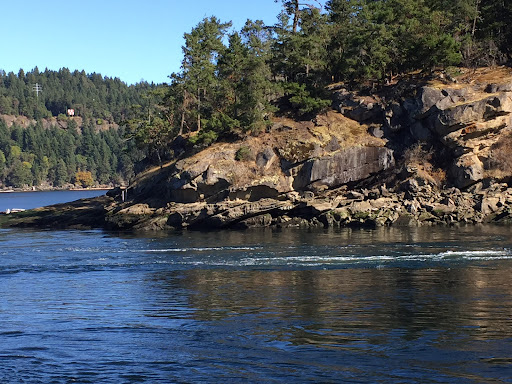 Read moreThe park is off the main path from the Cable Bay parking lot. There are some signs. The path is mostly flat through some dense scotch broom. The path is narrow and made of jagged rock gravel and can get muddy when it rains. There's a steepish slope down from the trees to the water viewpoint, where you can see the aquamarine water and the rushing rapids between Vancouver Island and...