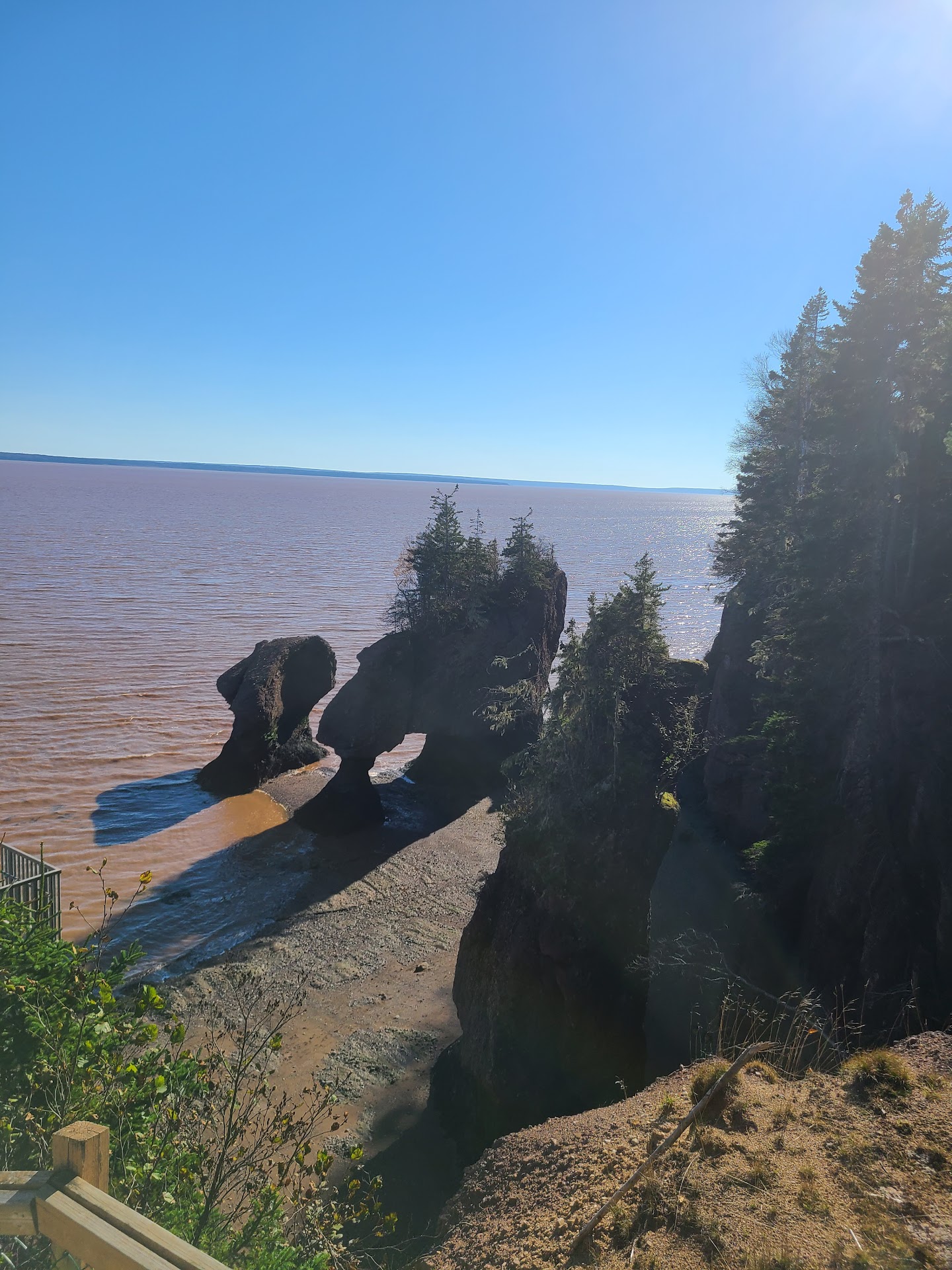 It was a TAD confusing at first because were the visitor center is- you arent at that “iconic” cliff spot. So facing the water, go left. Follow the trails. We found the spot with the steps down- they pull them up off season for safety. Makes sense this is dangerous nature.