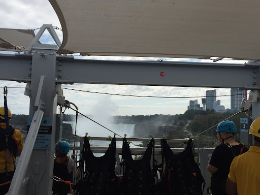 When about to be arriving to the exit, hold the ropes holding you, because the zipline automatically "catches you" and makes you slow down before you leave. You can do it again for 15$! You can see the beautiful falls and atmosphere, but at the middle to almost end of the ride, look forward no matter what. Not doing so can cause your neck to be gone, or you may have a...