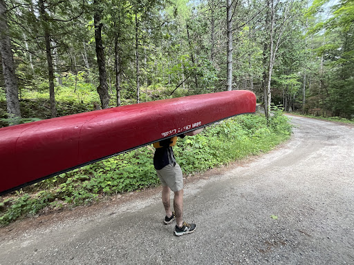 After a long and treacherous portage me and my friends took a dip in the water near the boat launch. We were having a jolly old time and ended up chatting with James the park ranger. Super nice guy. Soon after, James leaves to tend to his park ranger duties and we walk back to check on the rest of our group. While walking to our group James stops us in his car to let us know that the group was struggling so he took their boat and gear and is driving it to the end of the portage for them. Before we even had time to understand what James means, he’s off with our boat strapped onto his truck. What a delight! Our kids were so happy to not have to carry the heavy boat in 30 degree heat!!