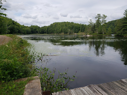 Stayed at the Muskrat cabin for deer hunting with Carl. Arrived earlier than expected, fortunately Carl was already there at Reception and able to use the time to sight in and demonstrate shooting proficiency before we went to the cabin. Reception has clean bathroom, WiFi and small shop (basic camping/swimming stuff, clothing, locally made jams/honeys/toiletries, etc.), credit card accepted.||Cabin: about a 20-minute drive from Reception (beware gravel roads). Parking is on gravel, but there's a wooden walkway that brings you up to the front of the cabin, with grass on either side if you need to wipe off your feet (it was raining most of the time). Front lawn has chairs overlooking the lake, fire pit, and steps head down to the dock where kayaks and a boat await. It was too cold though, didn't try them out. Deck has a table and covered BBQ. Enclosed, screened-in front patio with Montauk chairs, broom is in the corner. Quiet location, didn't see anyone else in the area at all for the duration of the stay.||Inside: Small living room with couch and two comfy armchairs surrounding a wood-burning fireplace - hardwood logs and poker provided. Tip: Bring work gloves to transport extra logs from outside if needed. Card games and location information on the coffee table. 3 bedrooms: 2 twin upstairs, 1 bunk bed room, 1 master BR. Each had its own dresser with extra blanket inside. Master BR only has one side table so we brought a chair in to use on the other side, worked like a charm. ||Appliances: Everything is gas-powered, so it took a bit of figuring out how to turn on the lights (turn on gas, light with lighter) - totally missed the instructions on the kitchen table since it was dark inside. Stove and oven also gas-powered - takes a bit of getting used to the toaster maker (using flimsy rack provided on the stove). The furnace kept the place nice and warm, and with a fire in the fireplace, the upper bedroom were almost unbearably warm. The pilot went out in the water heater on the last day - we didn't bother reporting it since we were leaving soon after, told Reception on our way out and they sent someone to fix it right away. Bring a portable light/flashlight/headlamp, easier to use in a pinch instead of futzing to light the lamps (you will need to climb on furniture to do this if you're short).||What's provided: Bathroom is well-stocked with toiletries, but the first aid kit was lacking items - more on that later. Kitchen well-stocked with soap, brand new scrubber, pots, pans, salt/pepper, utensils, etc. Love the pine-scented toiletries/soaps - available for sale at Reception. Note: The chef's knife was crap and needed to be sharpened, will bring my own next time. Freezer and fridge worked like a charm, no issues. Garbage bins and bags provided. ||TICK ALERT! The location guide had warned of ticks. I wasn't too concerned given how cold it was, and I thought since the dogs were also on Simparica so the tick would just bite and die. We went exploring over the bridge close to the cabin but the trail didn't seem like it was being maintained - lots of mushrooms, saw bear poop on a log. I did check for ticks when we got back, but somehow one ended biting my spouse - he only noticed because it hurt! Someone had stolen the tick key and bandaids from the first aid kit - fortunately we had brought tweezers, our own first aid kit and Ziploc bag for the dead tick, so we were fine. Reported to Reception on our departure though. No long term effects so far, knock on wood. Note to self: stay on trail next time!||There is zero reception for cellphone/internet whatsoever... yay! We brought walkie-talkies to communicate with each other while on site.||Note: there isn't much place to hang/lay your gear out to dry, you may want to bring a portable clothesline especially if it rains all the time. ||Already booked again for this fall, looking forward to...