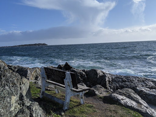 Nice spot for a gorgeous view (walk up the rocks). There’s a couple spot to sit (including two wood beach lounge chairs). Come on a windy day and you’ll be amazed with crashing waves against the rocks. There’s no bikes allowed in the cemetery, but I’ve seen people walk around and park their bikes...