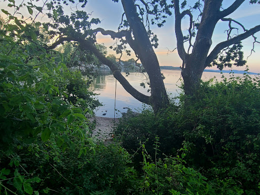 Benches - one at the point, prime seating space - plus a picnic table. The park overlooks a small somewhat private beach to the north.