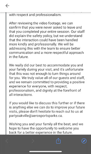 Aerosports Oakville charged me for an automatic renewal and would not provide me with a refund. Safe to say I’m never going back here with my son and I suspect a lot of our friends and family after hearing about this will not be going back either. Below are the emails that I sent and the reply that I received. Be very very careful when you are offered a complimentary membership which will auto-renew. I don’t think what they are doing is even lawful. Good thing my spouse is a lawyer as we will likely be going to small claims court to settle this.