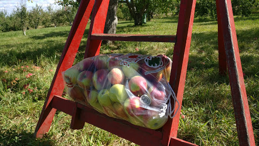 Concernant les pommes et le verger, j'ai lu rapidement qu'il y a 20 variétés, dont environ 10 en septembre. Une grande zone de pommiers était interdite et nous n'avons eu accès qu'à 2 sortes. Peu d'échelle à notre disposition alors que les pommes sont hautes. Les sortes sont indiquées par des bandes de couleurs qui sont parfois cachées par les feuilles ou au sol. De plus, les sortes étaient parfois pêle-mêle. Pas toujours clair. Peu d'info pour les identifier. Beaucoup de pression des employés pour terminer plus vite alors que ce n'était pas l'heure de fermer. Rien pour facilité notre récolte.