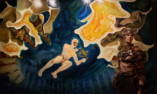 The Art of Ideas Gallery tour is truly an experience full of wonder! The house on its own triggers the imagination with a combination of French and Italian architecture and all-original woodwork and flooring worthy of days of exploration. But the house is owned by a visionary artist who takes the patron on a visual journey via his paintings, photographs, and sculptures, from humanity's distant past to a possible future far beyond what most people attempt to imagine: a future where people and machines merge into a cybernetic organism that travels to the stars! Some of my favorite pieces include the backlit photographs of linear vs. spatial types of thinking, the first floor's display of ships in various stages of evolution and exploration, and the final paintings on the top floor that must be experienced first-hand rather than spoiled with my completely inadequate description. Even approaching the house through the garden deserves an hour of viewing. There are multiple islands with sculptures, monoliths, flowers, trees, and two mirror-reflected, spine-like metal objects that defy categorization. You must make a point of visiting this exhibit. It will create or at least exponentially expand the part of your thinking that wonders how far we have come and how far...