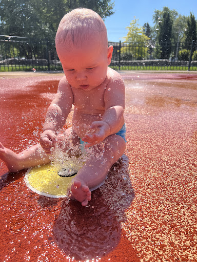 Love this splash pad! Clean. Shaded seating area with benches. Nice rubberized surface which was great for our little one who’s only crawling. Water wasn’t tap cold like many other splash pads in the area, even my husband and I enjoyed ourselves. Multiple other families were there during our visits on a holiday weekend, but there was no shortage of areas to play without feeling crowded.
