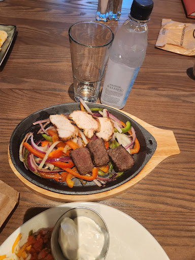 When our food finally arrived, the disappointment continued. My mom and I each ordered the duo fajitas. What we got was three tiny pieces of chicken and a few dry steak chunks over some onions and peppers. It looked like one chicken breast was split between two plates. No seasoning, no flavor—for $25, it was a joke. My spouse ordered wings and flatbread, which were also underwhelming.