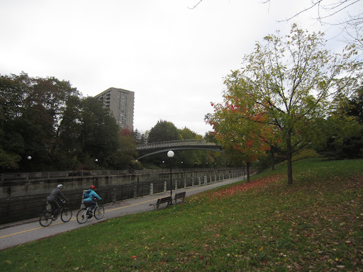 The Corktown Footbridge offers a vital pedestrian and cycling connection over the Rideau Canal, located approximately 400 meters south of the Laurier Avenue Bridge. It links the University of Ottawa campus with the Golden Triangle neighbourhood, significantly improving access between these areas and to retail on Elgin Street. The bridge also connects the eastern and western sides of the Rideau Canal Pathway and provides links to Colonel By Drive and Queen Elizabeth Driveway. The 70-meter structure showcases a light and elegant contemporary design. Its shallow arches in stainless steel are a key visual element, nodding to the tradition of arched crossings over the canal. The railings feature bent, bronze-plate handrails, subtly referencing Ottawa's architectural use of copper and bronze. Designed with careful attention to aesthetics, the bridge features a streamlined spine beam for the deck and folded stainless steel curbs with concealed LED lighting, providing a clean and modern look, especially at night. While I did not find specific information about on-site interpretive plaques, the name of the bridge itself holds historical significance. "Corktown" refers to the shanties built along the "Deep Cut" section of the Rideau Canal during its construction, many of whose labourers hailed from County Cork in Ireland. The choice of this name serves as a reminder of the area's working-class origins and the Irish immigrants who contributed to the canal's construction. Crossing the Corktown Footbridge provides a convenient and visually appealing alternative to the busier Laurier Avenue Bridge. Its design prioritizes pedestrians and cyclists, offering a safer and more enjoyable route. The bridge has become a popular spot, exceeding initial expectations for usage and enhancing connectivity within the city. It offers new vantage points for appreciating the surrounding scenery, including views of the Laurier Bridge, the Château Laurier, and the Parliament Buildings, contributing to a more walkable and connected urban...