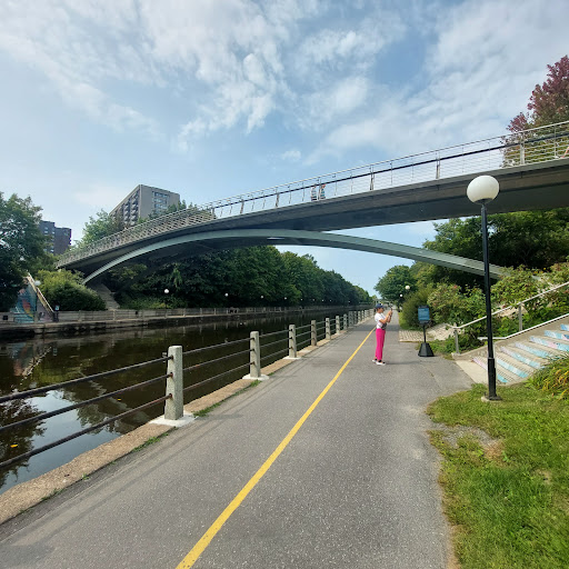 Read moreNothing really exceptional about this footbridge but the artwork on the stairs on each side is beautiful, with the following story: "Fins to Feathers is a pair of illustrations linking each side of the Corktown Footbridge through the representation of water and wildlife. As you descend the steps on the west side of the Rideau Canal, you follow the path of the vibrant bass fish into the water below. On the east side, you ascend with the kingfisher bird from the water to the sky above. The hands evoke the relationship between people and nature and the chance encounters...